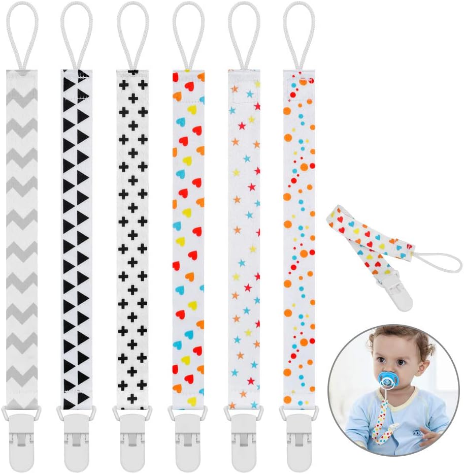 Mopoin 6 Pcs Attache Sucette Pour Bebe, Chaînes De Tétine Unisexes Pour Bébés Avec Clip En Plastique Sangle De Tétine En Coton Tissu Pour Bavoirs Tétines Triangulaires En Tissu Tétines