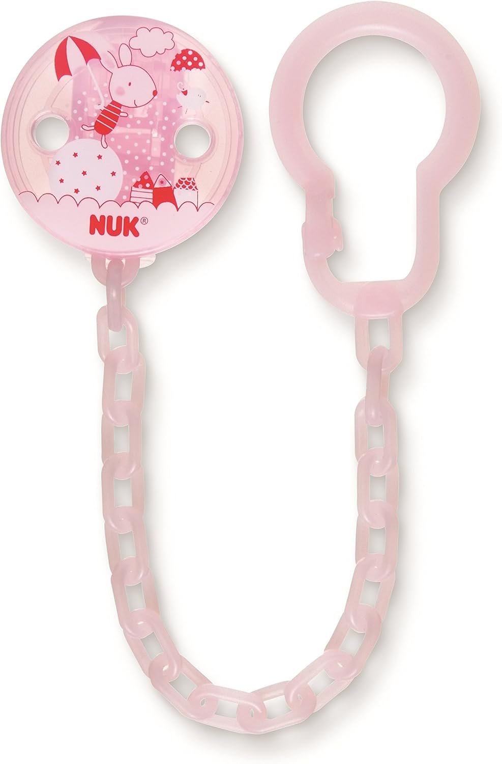 Attache sucette NUK collection rose & blue couleur rose avec chainette; Le design peut varier