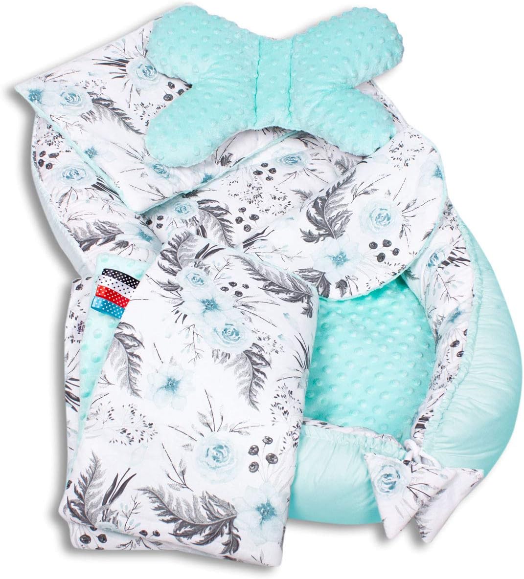 PALULLI 5 pièces. Ensemble d’équipement multifonction pour bébé, nid d’enfant, coussin de nuque, coussin plat, matelas pour bébé et couverture dans de belles combinaisons de couleurs - Indispensable dans une chambre de bébé.