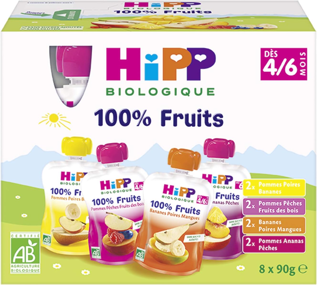 HiPP Biologique Multipack gourdes 4 variétés dès 4/6 Mois - 32 x 90 g