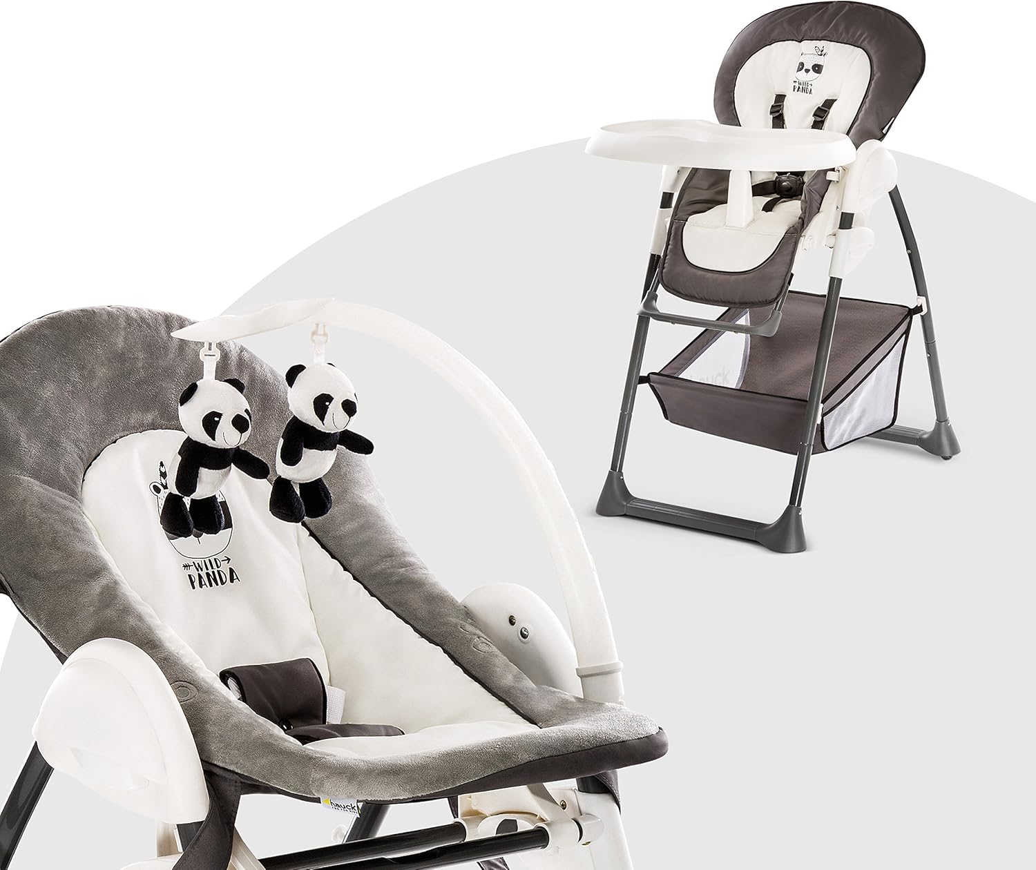 Hauck/ Sit N Relax/ Chaise Haute Bébé 3 en 1/ Transat Bébé et Chaise pour Enfants/ avec Position Couchée/ avec Arc Jeu, Plateau Repas, Roues/ Réglable en Hauteur/ Évolutive/ Pliable, wild panda (noir)