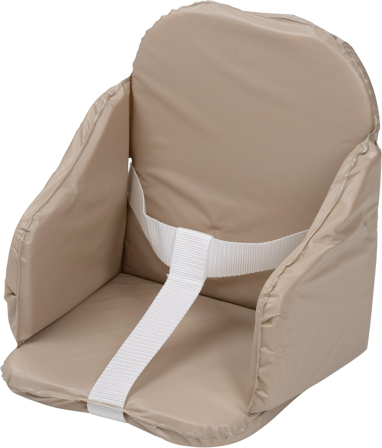 Le coussin de chaise PVC à sangles taupe par Tinéo assurera confort et sécurité à bébé pendant ses repas.